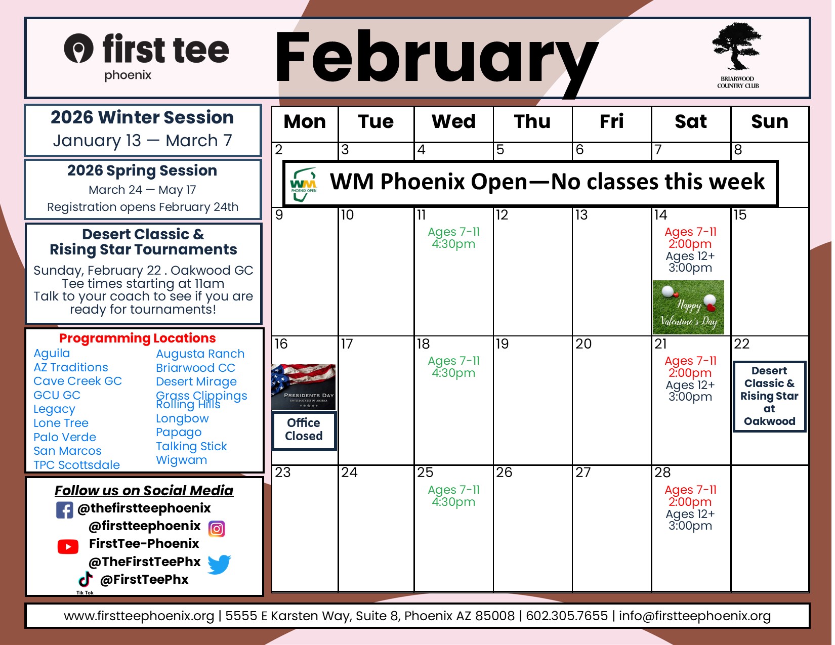Members are invited throughout the year to special opportunities provided by First Tee – Phoenix locally, First Tee HQ and other partners. These opportunities will vary- discounted tickets to events, a family picnic, Golf sales, etc.