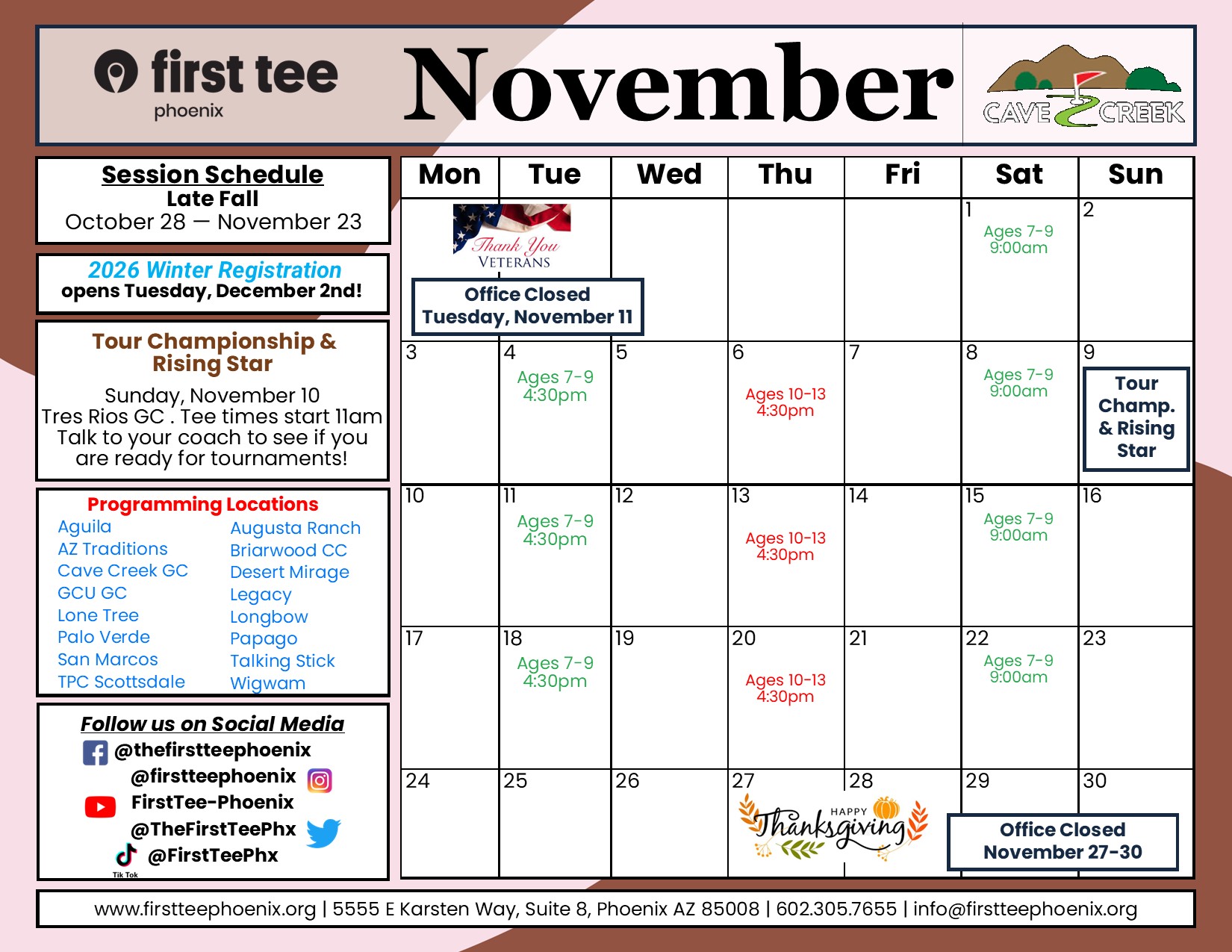 First Tee-Phoenix at Cave Creek Golf Course has been added to reach youth in North Phoenix and surrounding areas.