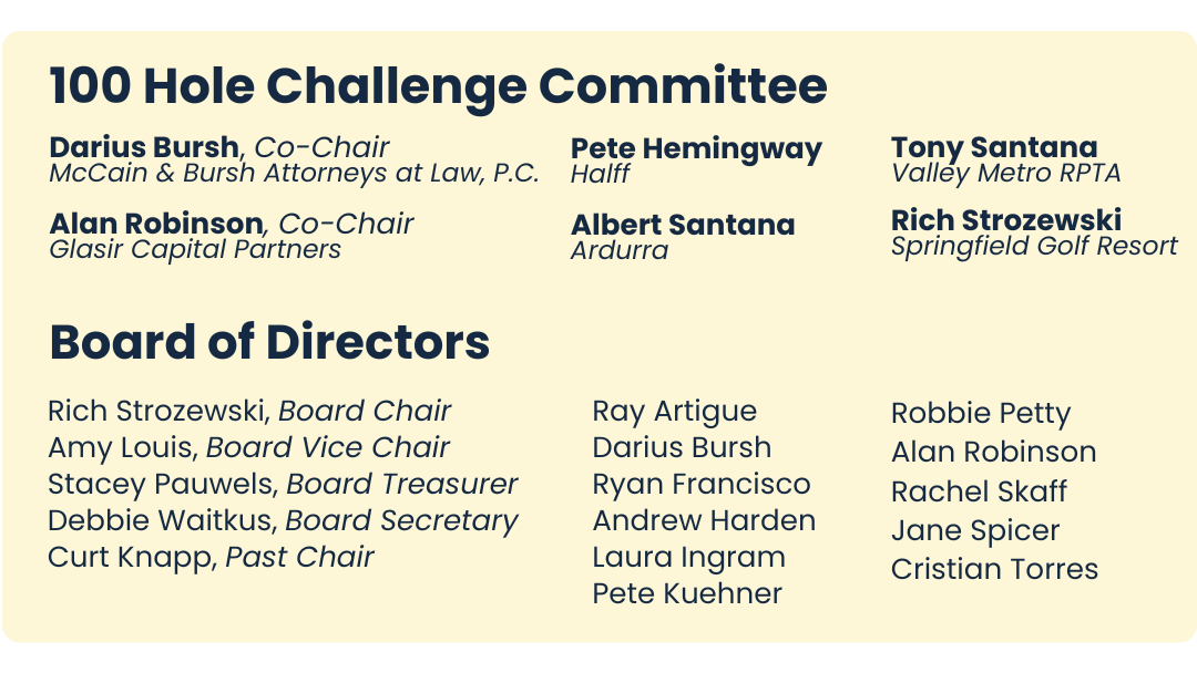- Year-round visibility on the First Tee – Phoenix website, annual impact reports, quarterly newsletters, and event signage at the FT-PHX Tour Junior Golf Tournaments