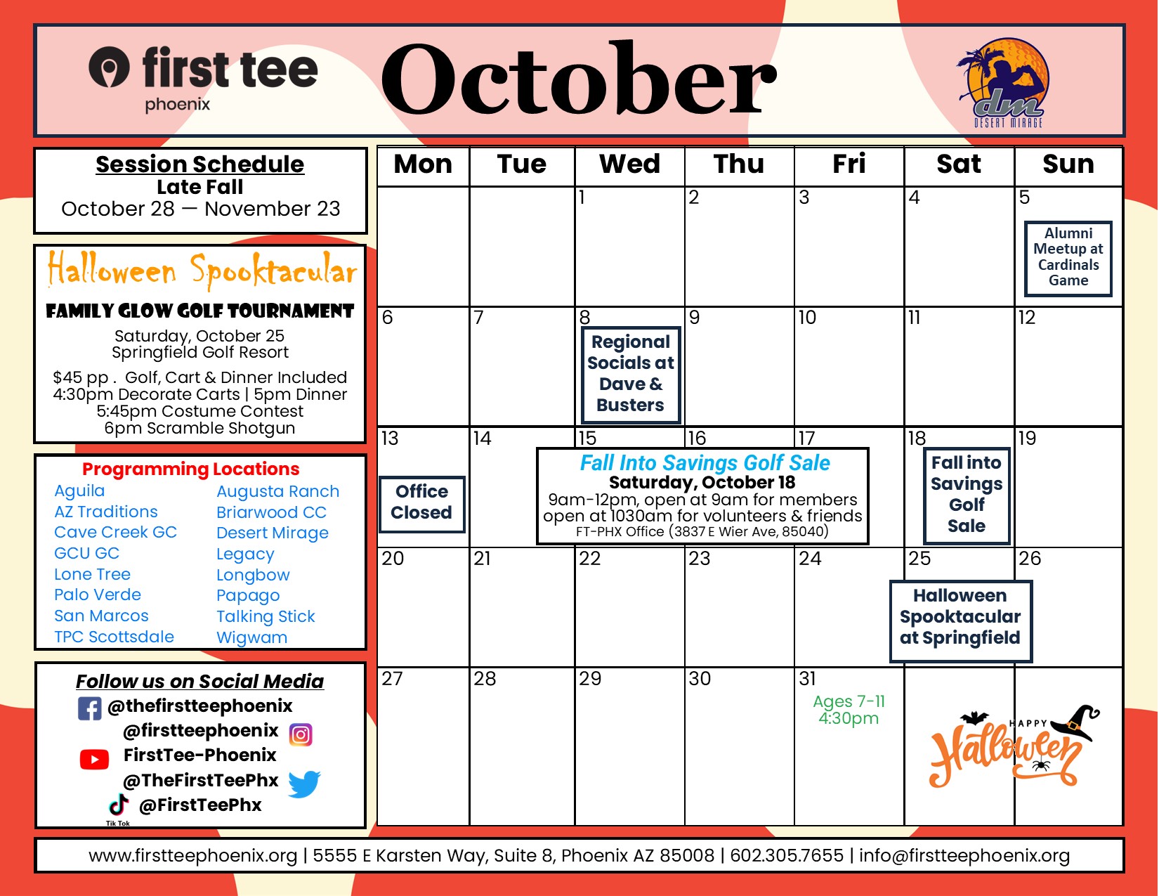 Members are invited throughout the year to special opportunities provided by First Tee – Phoenix locally, First Tee HQ and other partners. These opportunities will vary- discounted tickets to events, a family picnic, Golf sales, etc.