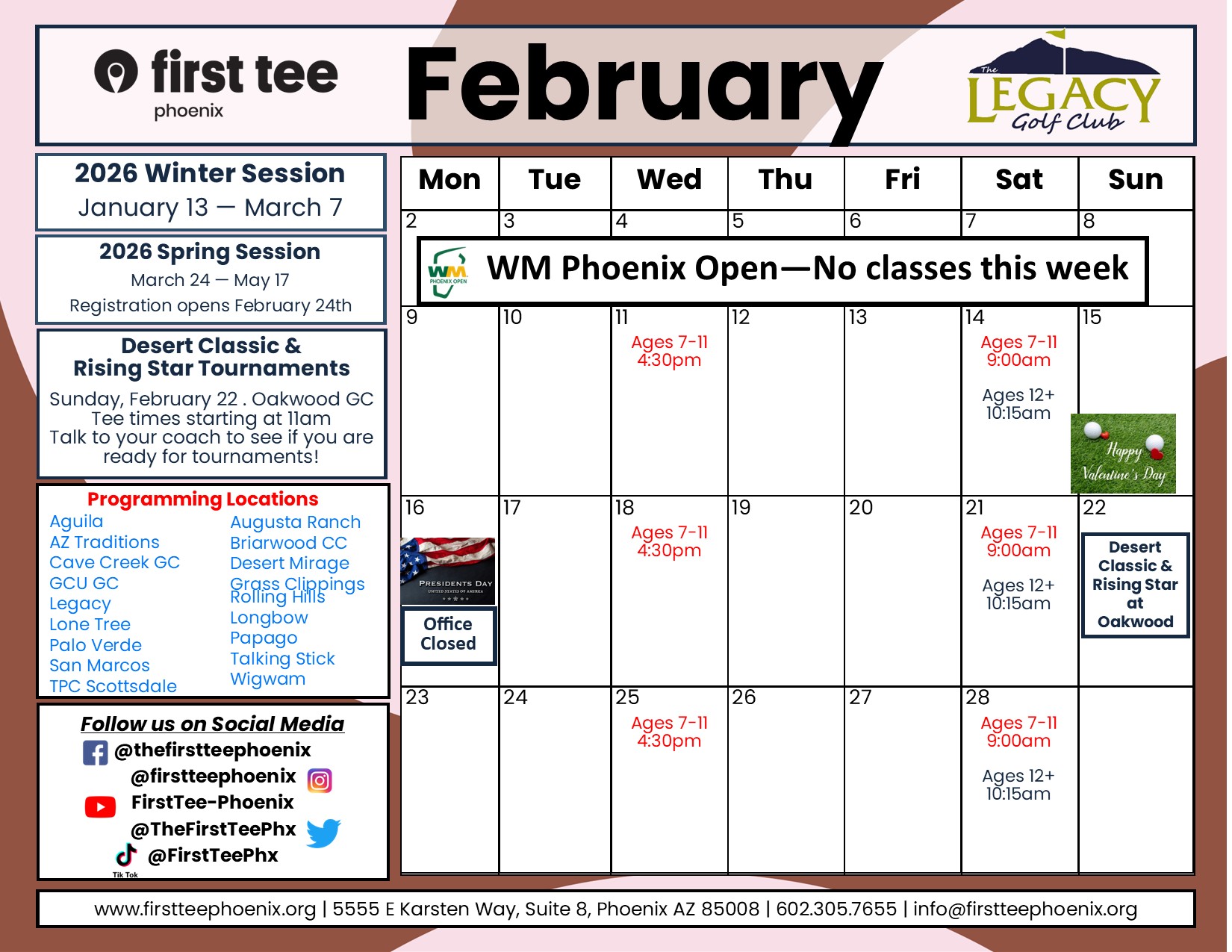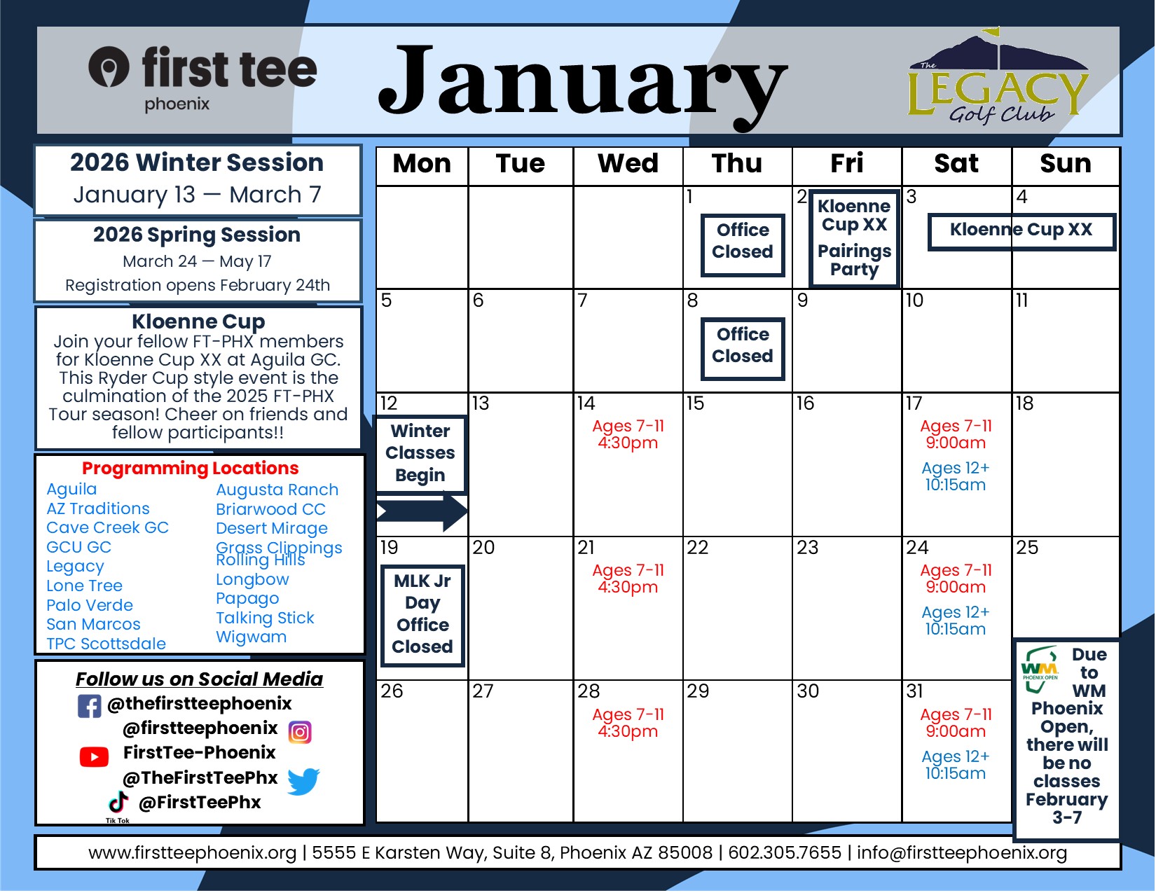 First Tee-Phoenix at The Legacy GC has been added to serve the youth in the South Phoenix area as well as the nearby Tempe and Ahwatukee neighborhoods.