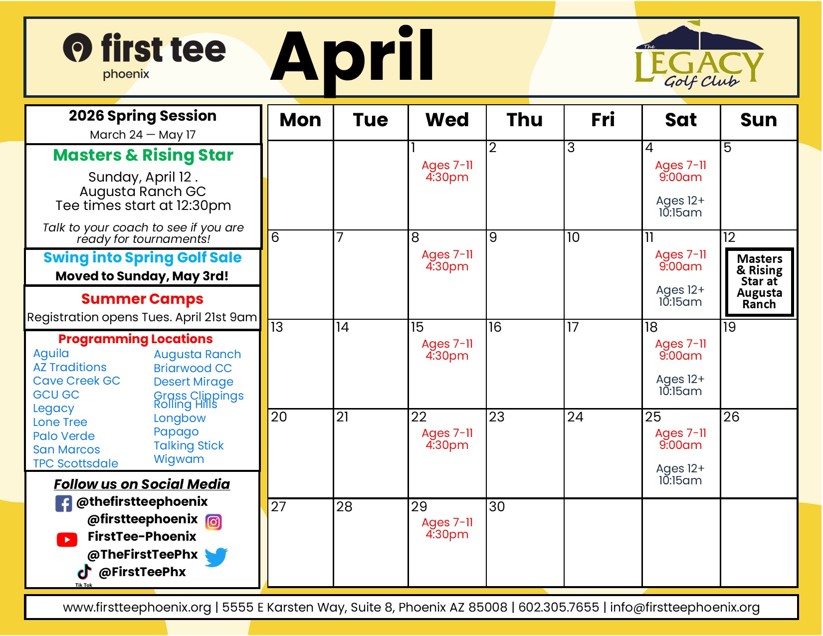First Tee-Phoenix at The Legacy GC has been added to serve the youth in the South Phoenix area as well as the nearby Tempe and Ahwatukee neighborhoods.