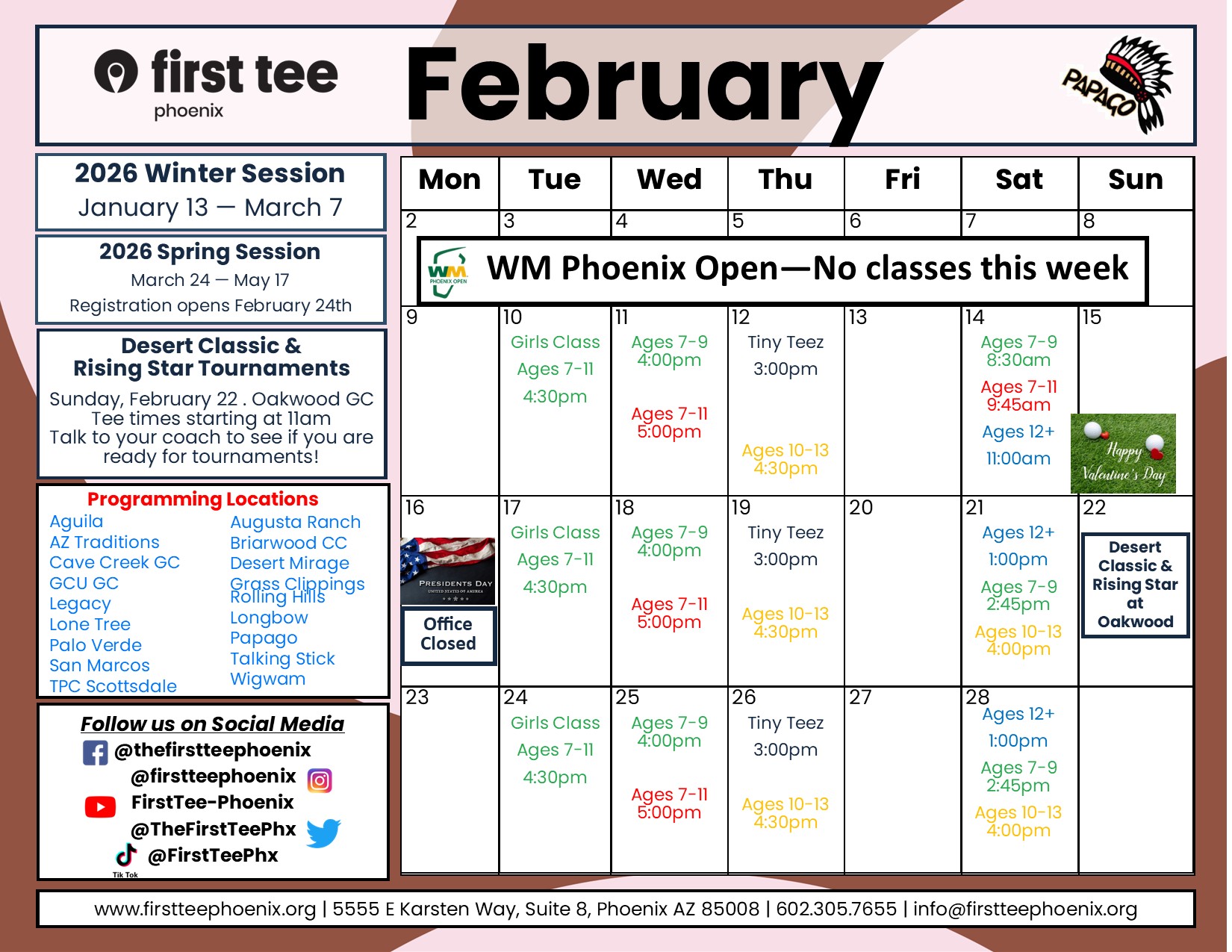Members are invited throughout the year to special opportunities provided by First Tee – Phoenix locally, First Tee HQ and other partners. These opportunities will vary- discounted tickets to events, a family picnic, Golf sales, etc.