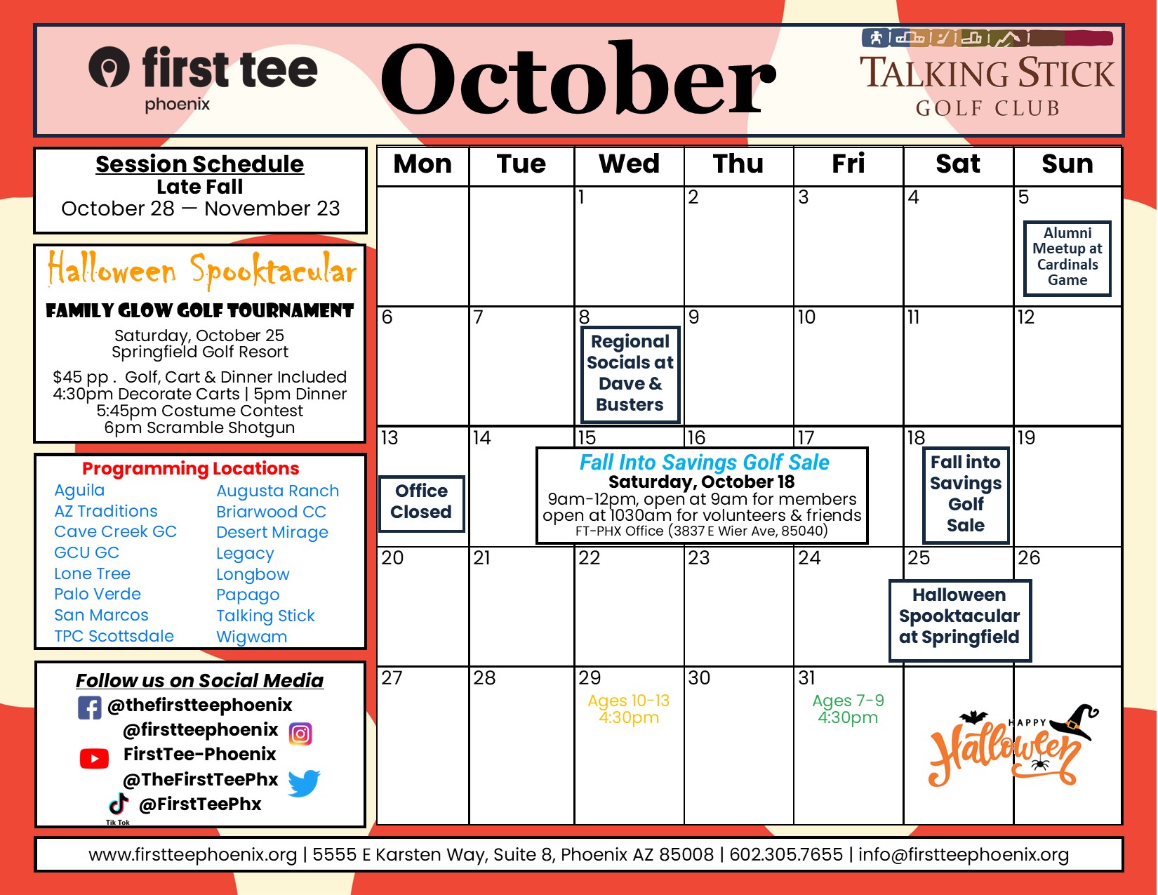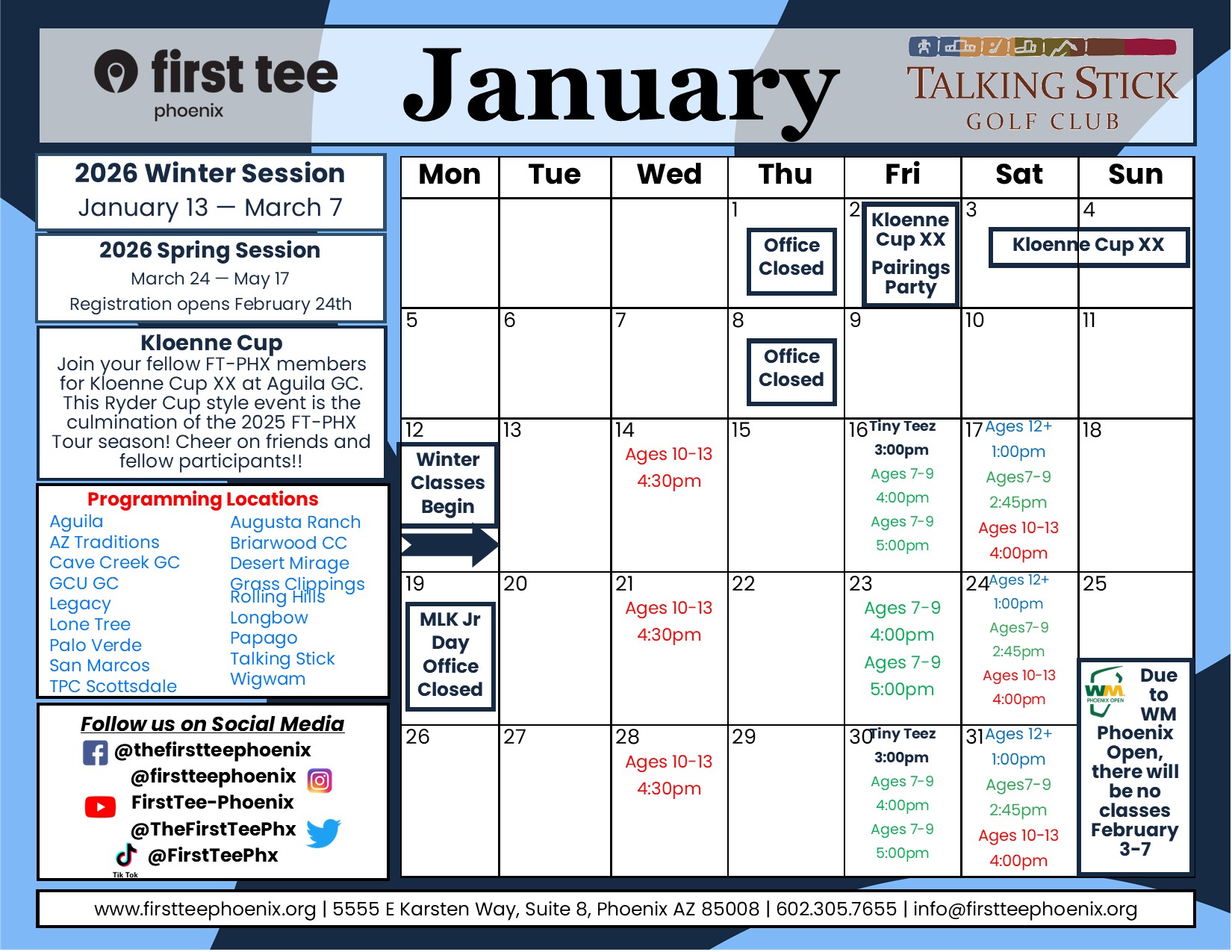 Members are invited throughout the year to special opportunities provided by First Tee – Phoenix locally, First Tee HQ and other partners. These opportunities will vary- discounted tickets to events, a family picnic, Golf sales, etc.