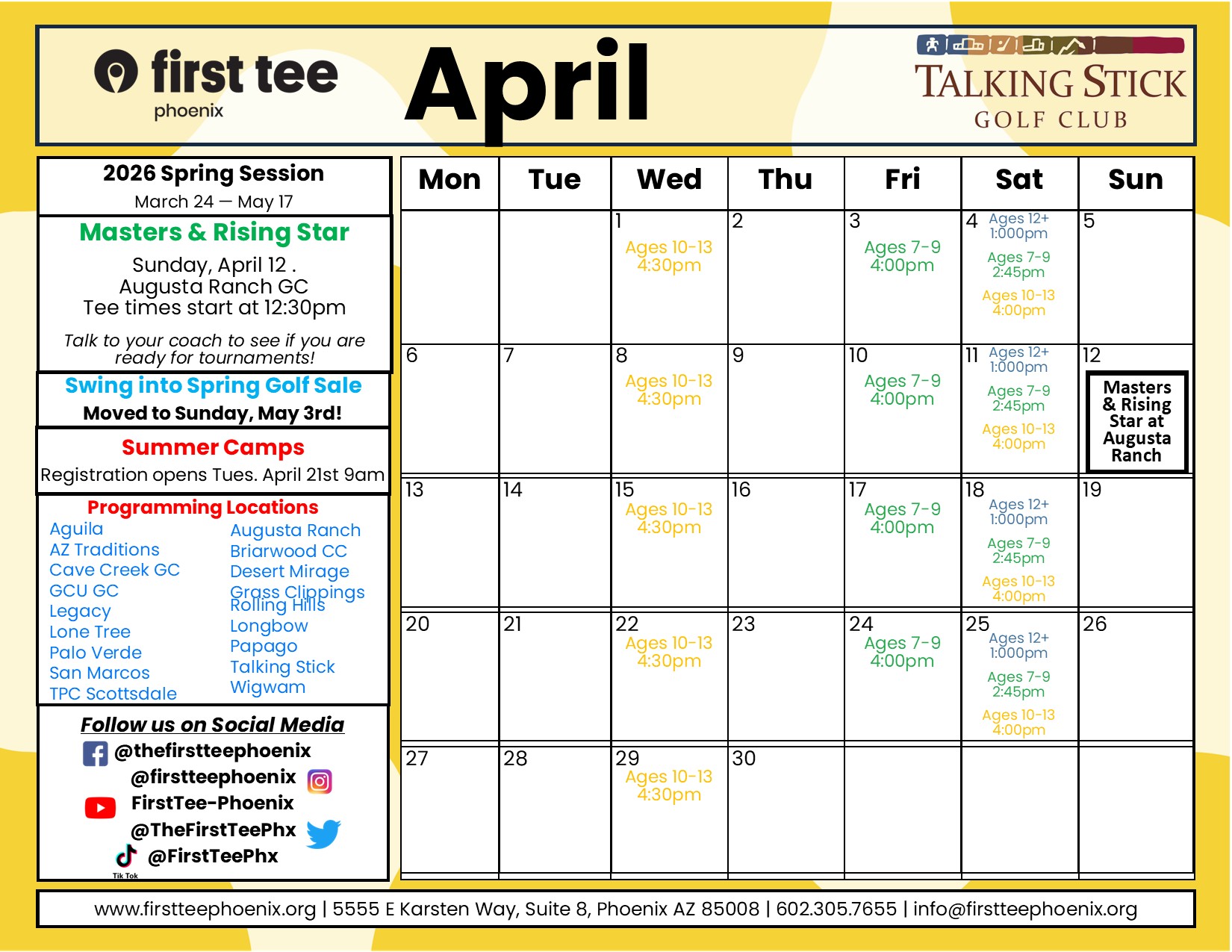 Members are invited throughout the year to special opportunities provided by First Tee – Phoenix locally, First Tee HQ and other partners. These opportunities will vary- discounted tickets to events, a family picnic, Golf sales, etc.